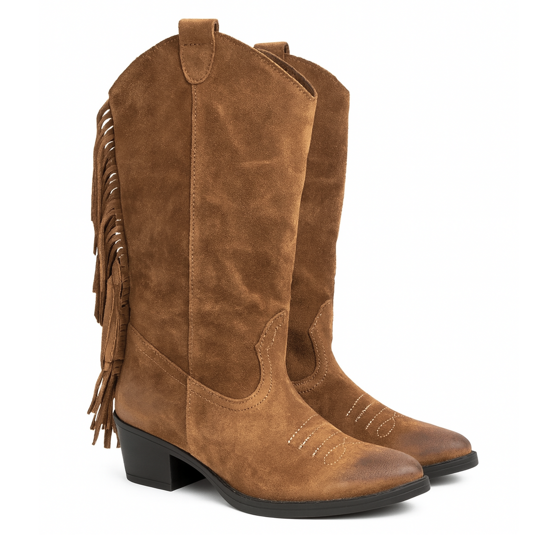 Ciocate dama din piele naturala intoarsa cu franjuri, maro - Made in Italy 04 Tabacco