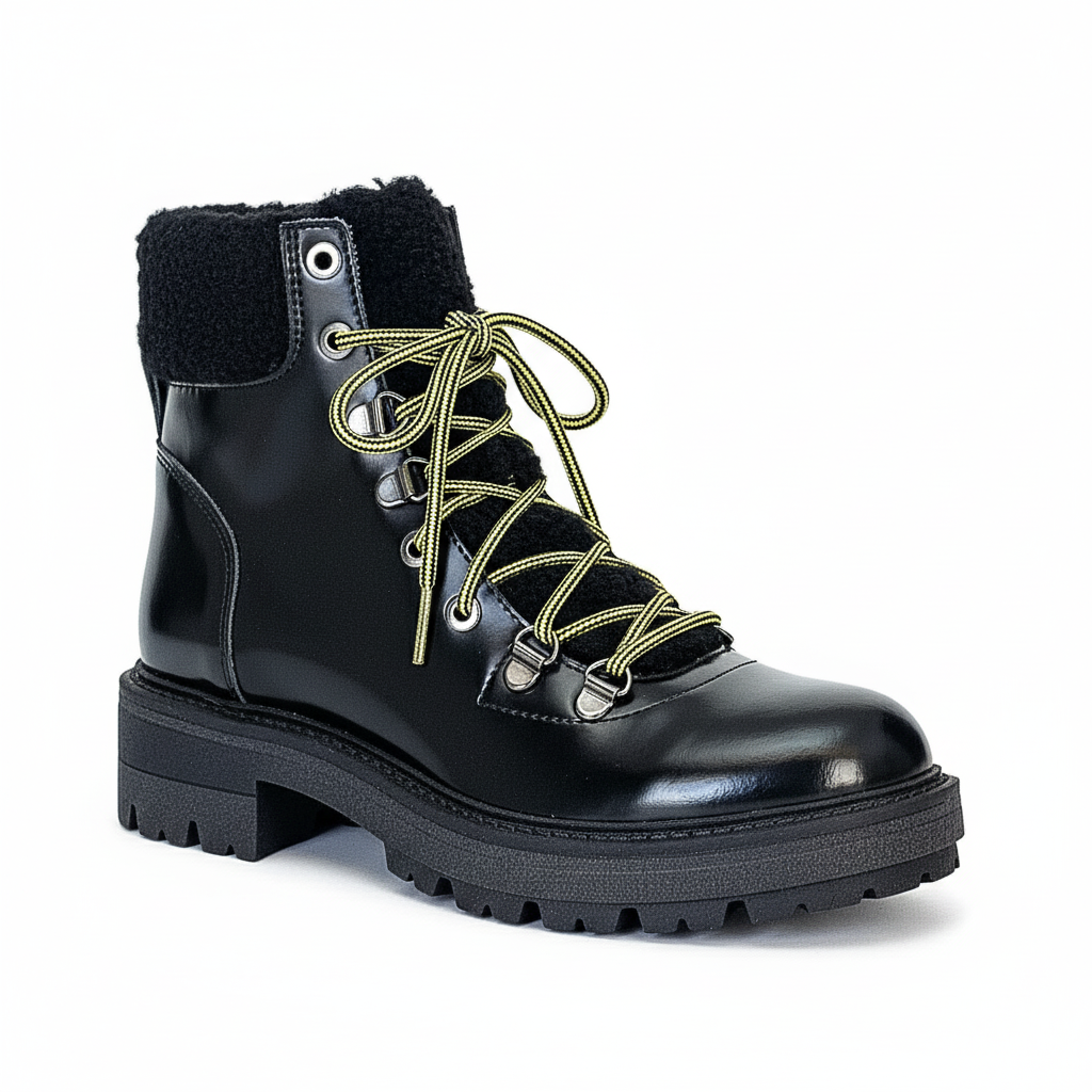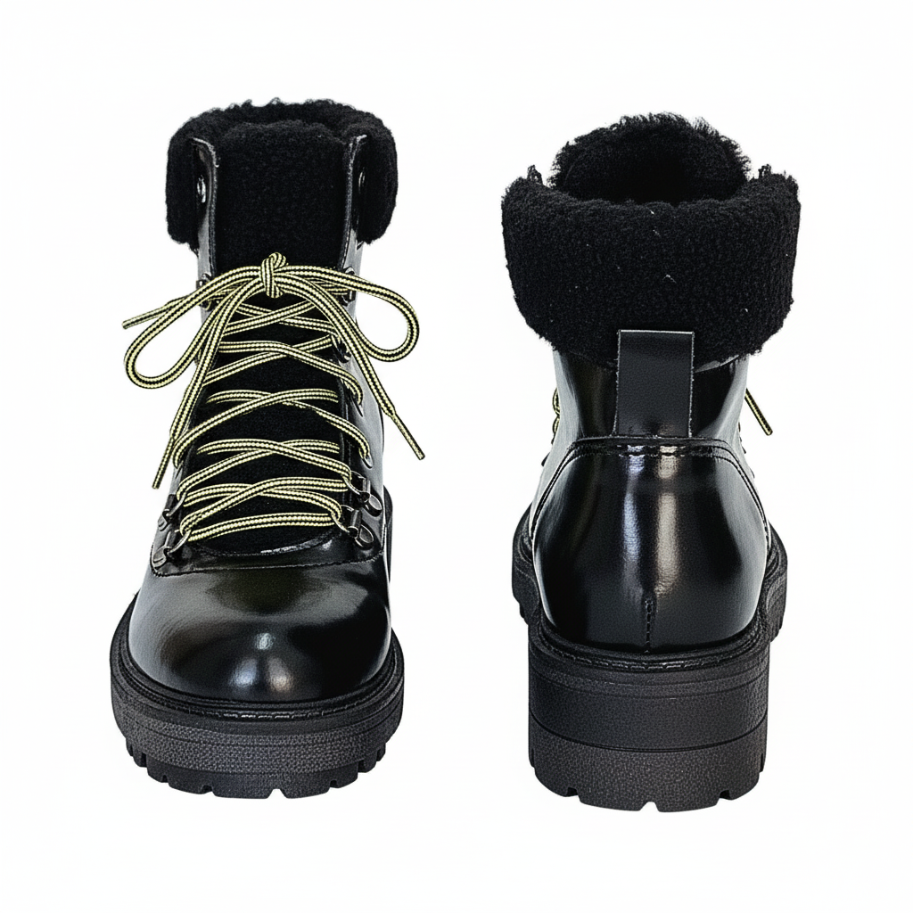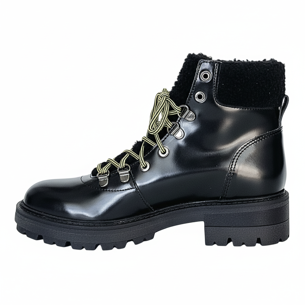 Ghete dama din piele naturala cu aspect lucios, Talpa antiderapanta, Negru-Lea-gu, 58/3754 Vitello Abr Nero, R5