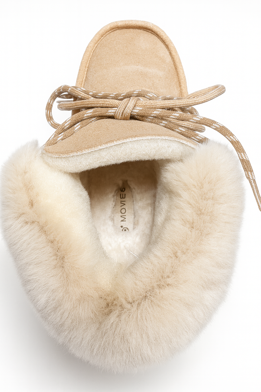 Ghete dama din piele naturala intoarsa, îmblanite, bej-Movie's H5-06A
