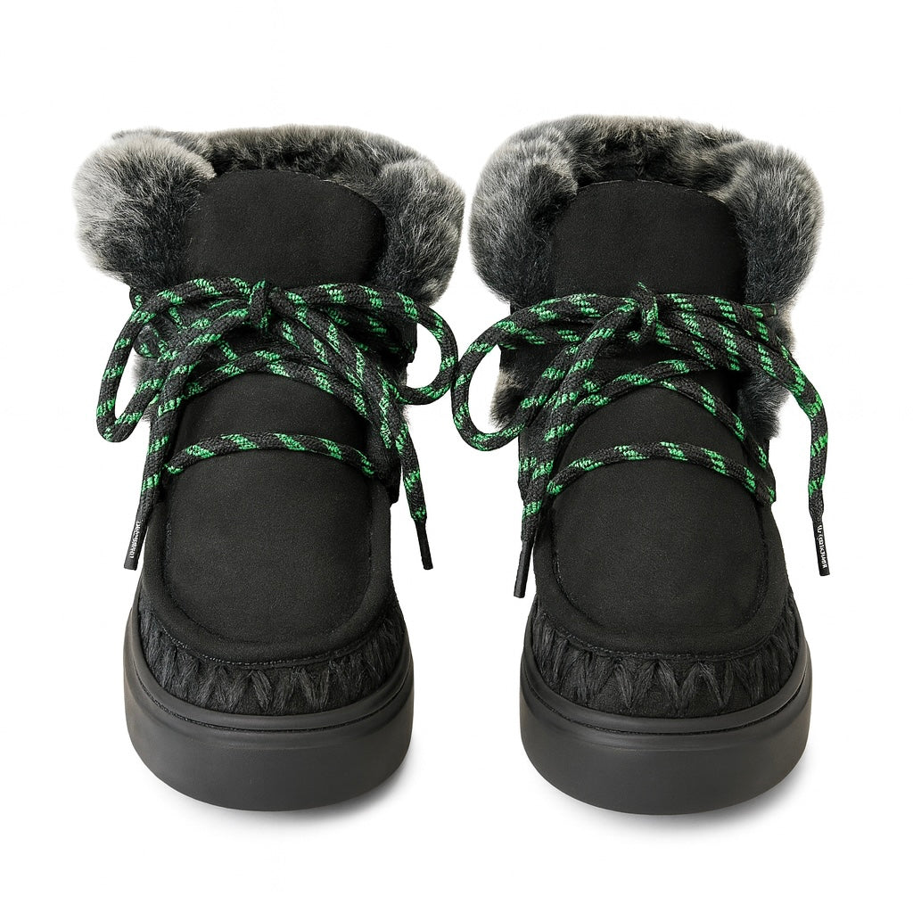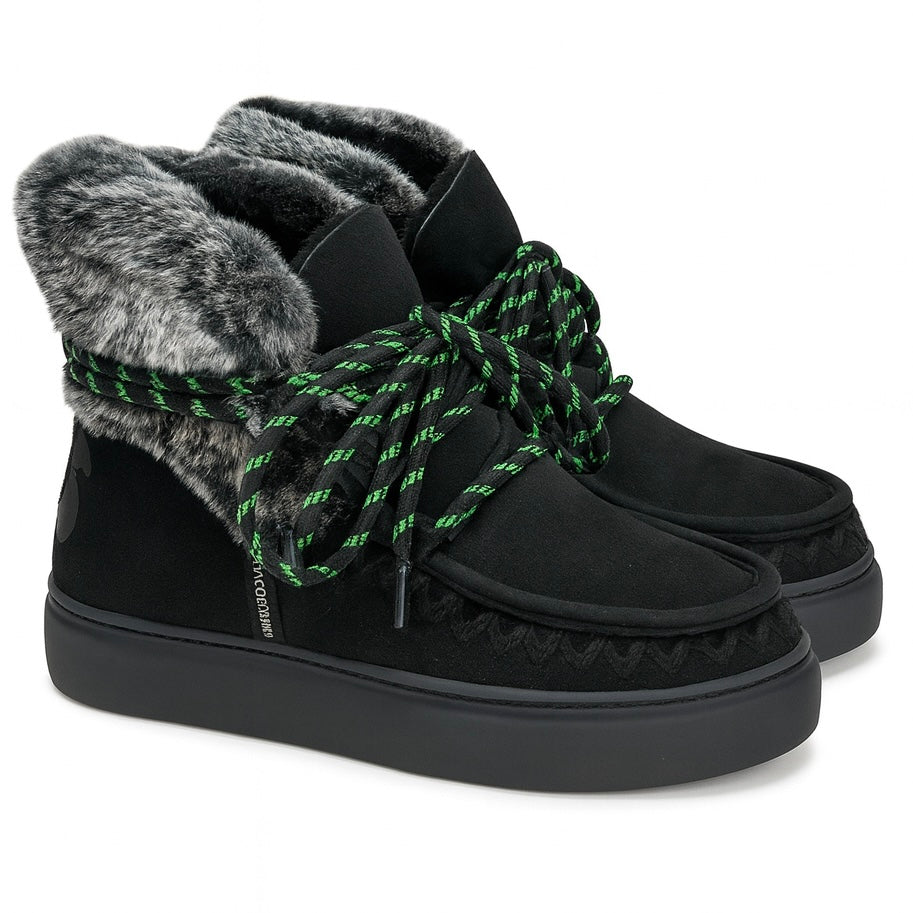 Ghete dama din piele naturala intoarsa, îmblanite, Negru-Movie's, H5-06B Blk/Green R8