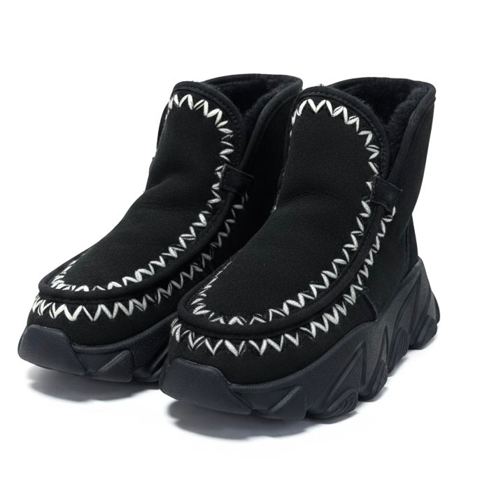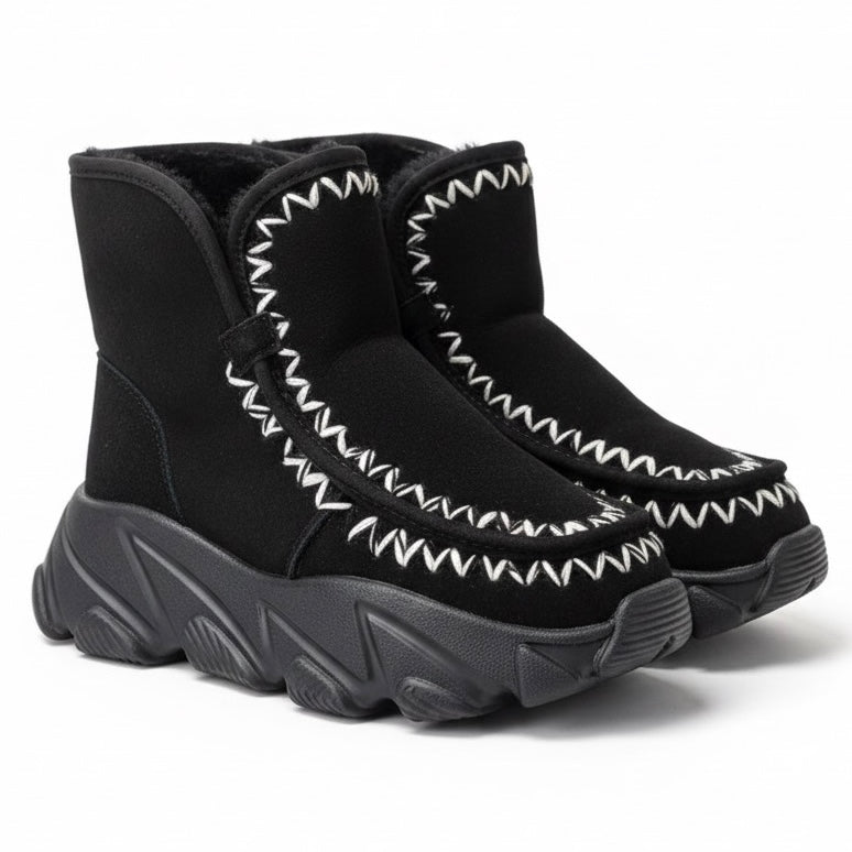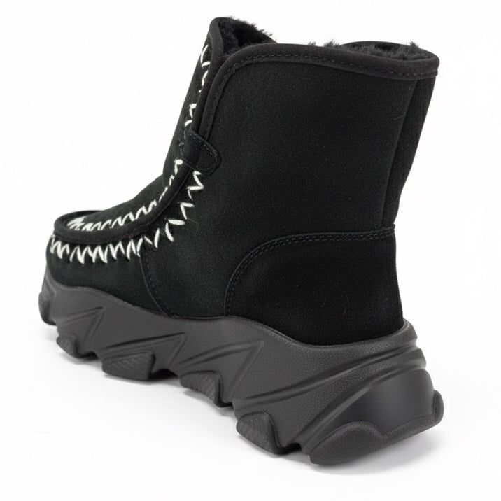 Ghete dama din piele naturala intoarsa, îmblanite, negru-Movie's H6-01