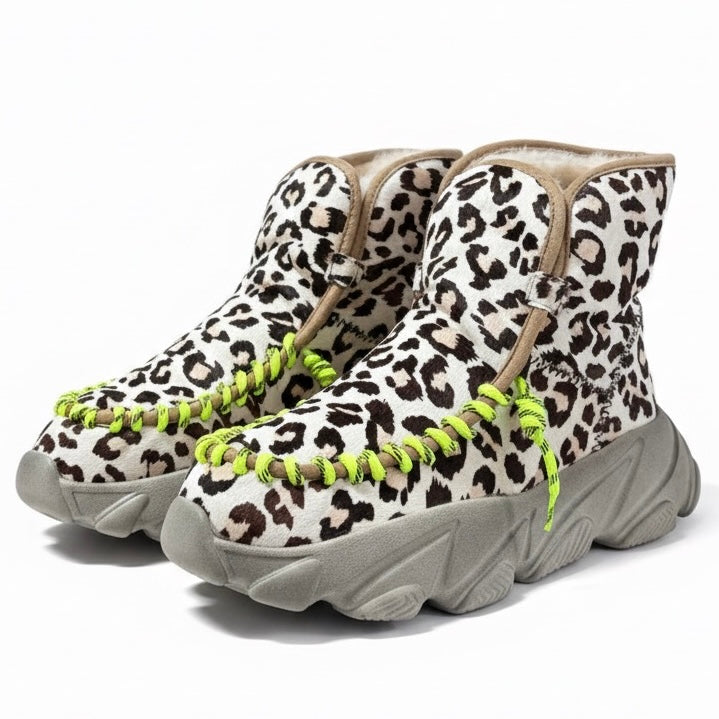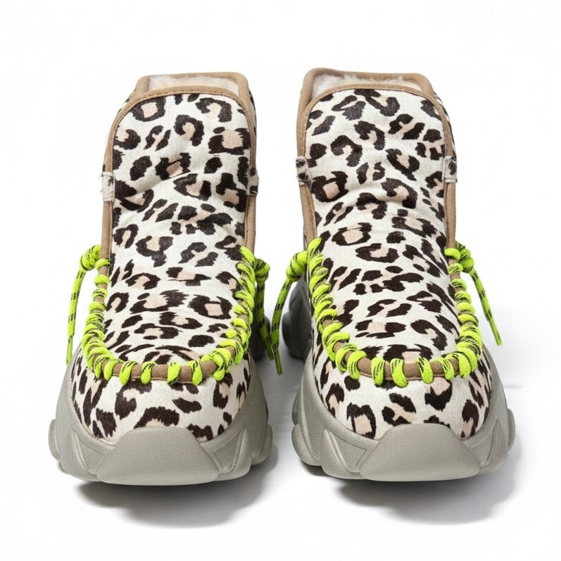 Ghete dama din piele naturala ponei, îmblanite, bej-maro-Movie's H6-10