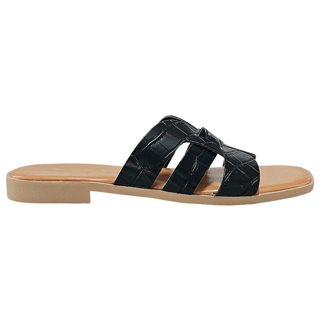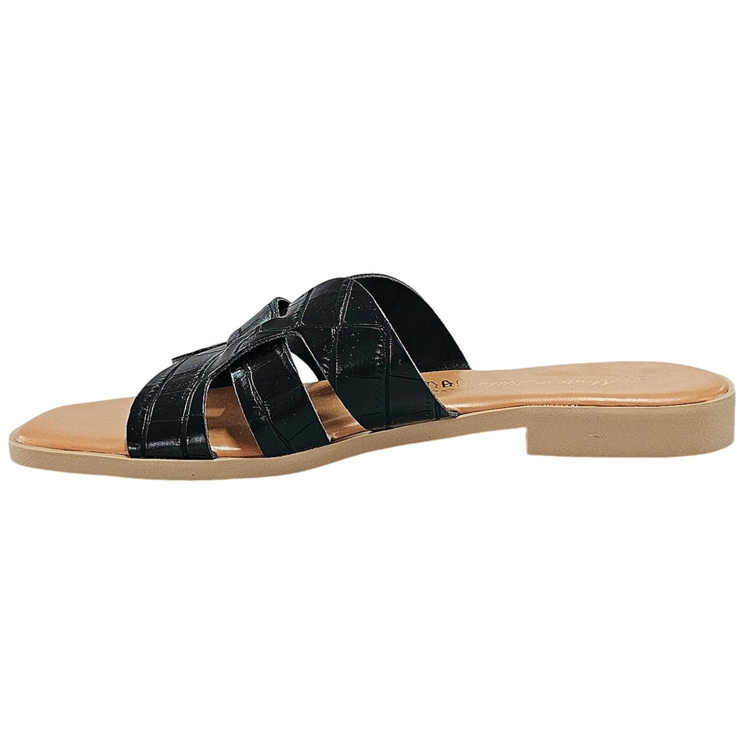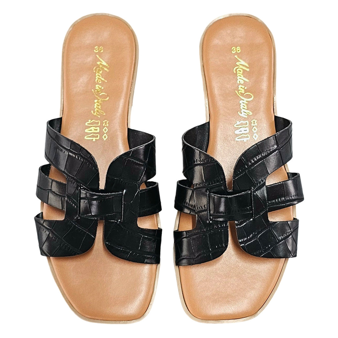 Papuci dama din piele naturala croco, Negru-Made in Italy, Art Valentina Nero, R5