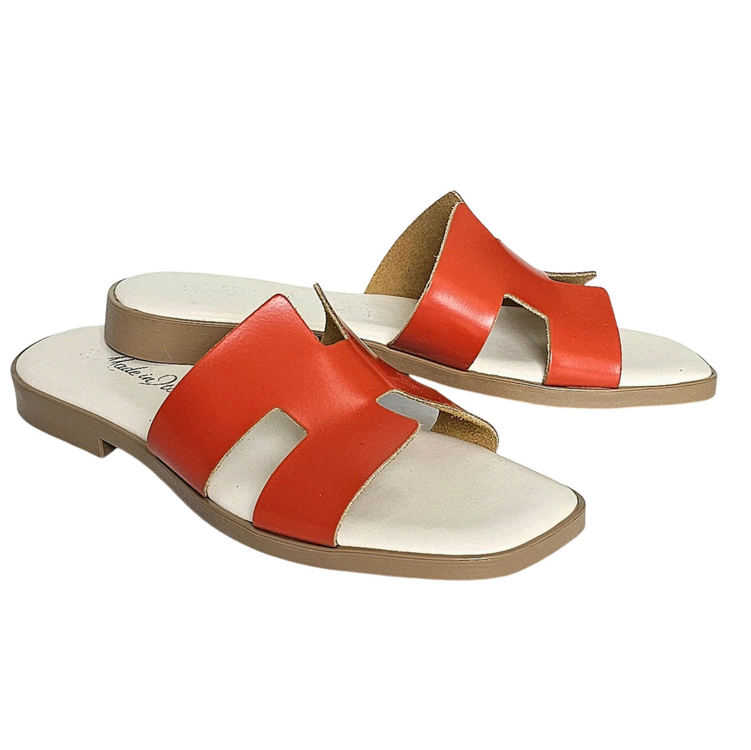 Papuci dama din piele naturala, Portocaliu-Made in Italy, H Arancio