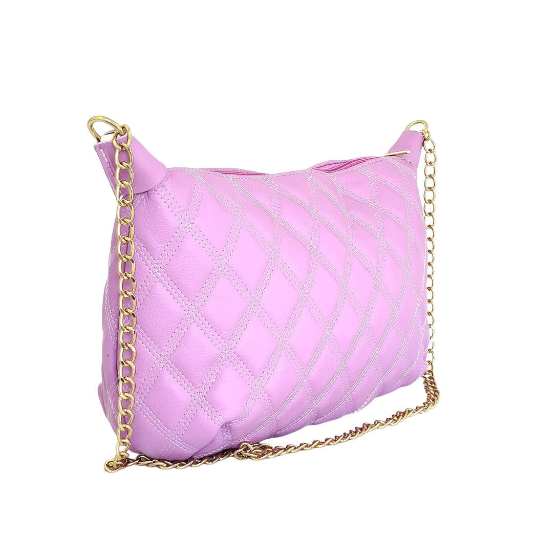 Poseta dama din piele naturala, Matlasat, Roz - Made in Italy