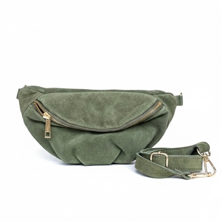 Borseta pentru femei din piele naturala intoarsa, verde- Made in Italy