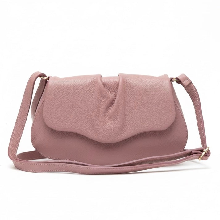 Poseta chic pentru femei din piele naturala, roz pudra- Made in Italy
