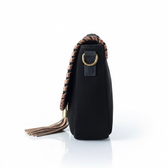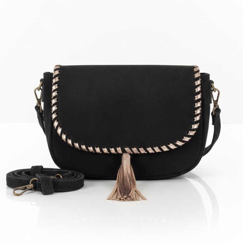 Poseta pentru femei din piele naturala intorasa, negru- Made in Italy