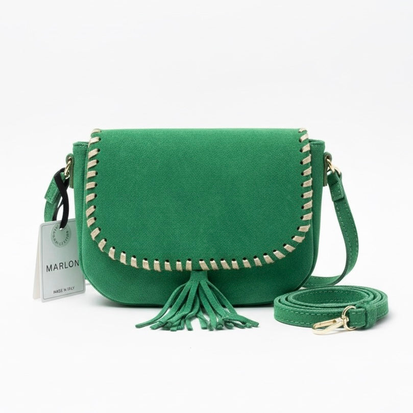 Poseta pentru femei din piele naturala intorasa, verde- Made in Italy