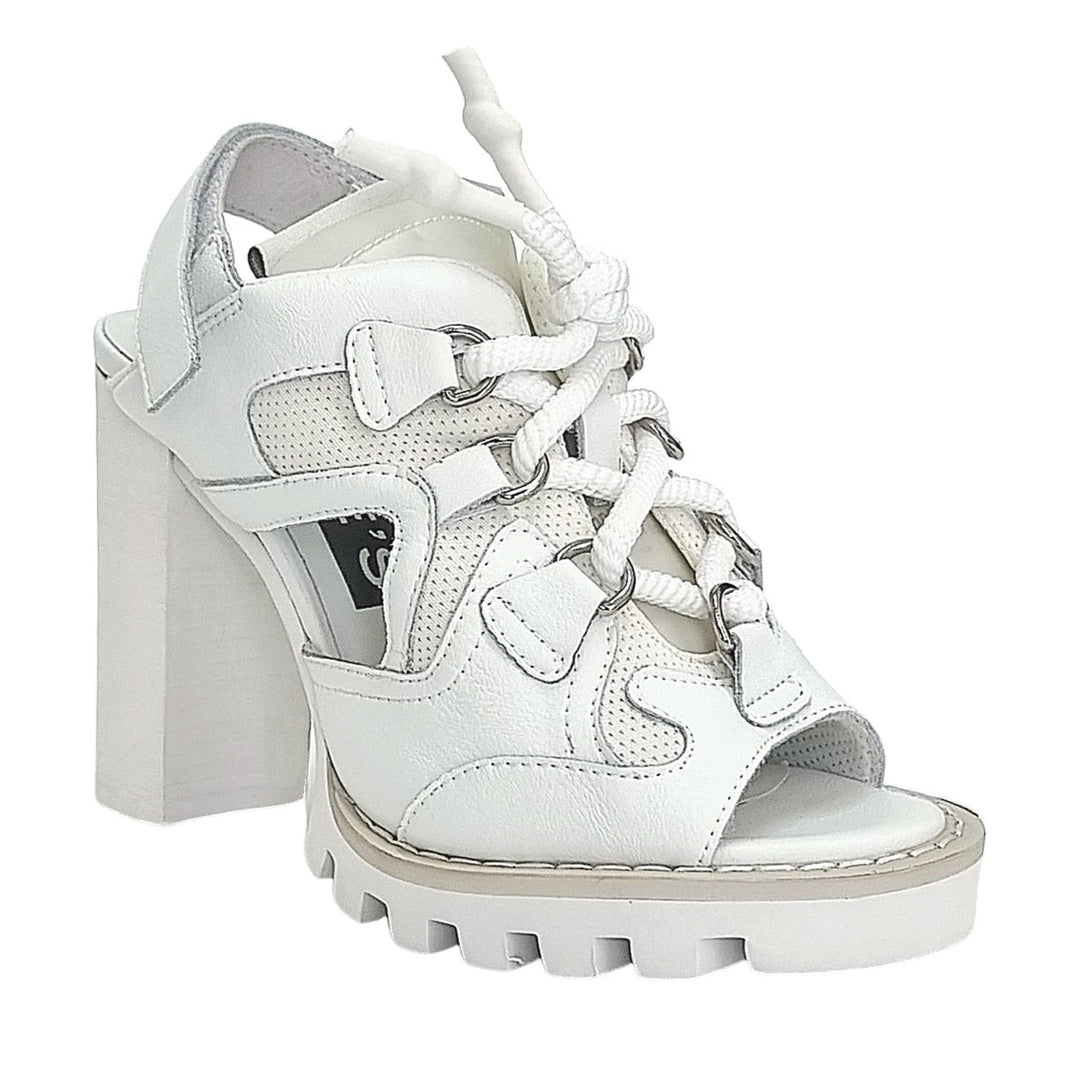 Sandale dama din piele naturala, Platforma usoara din spuma, Alb-Movie's